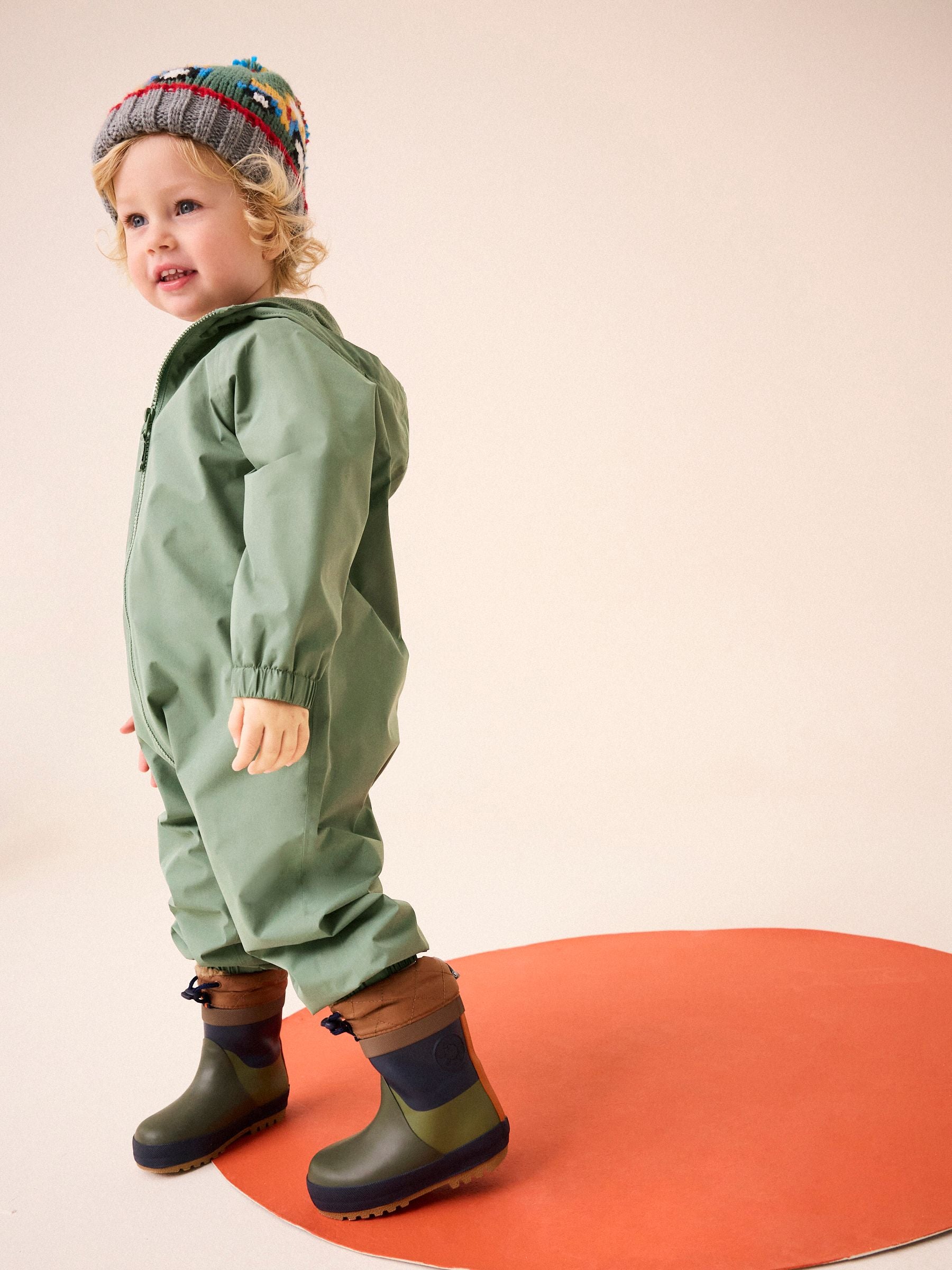 Yağmurlu günlerdeki maceraları çok daha eğlenceli hale getirin! Bu uzun kollu tek parça yağmur tulumu tamamen su geçirmezdir ve iç kısmı yumuşak mikropolar astarla kaplıdır, böylece çocuğunuzu sıcak tutar. Bantlı dikişleri, fermuarlı kapanışı ve kapüşonuyla en yağmurlu havalarda bile kuru kalmasını sağlar.