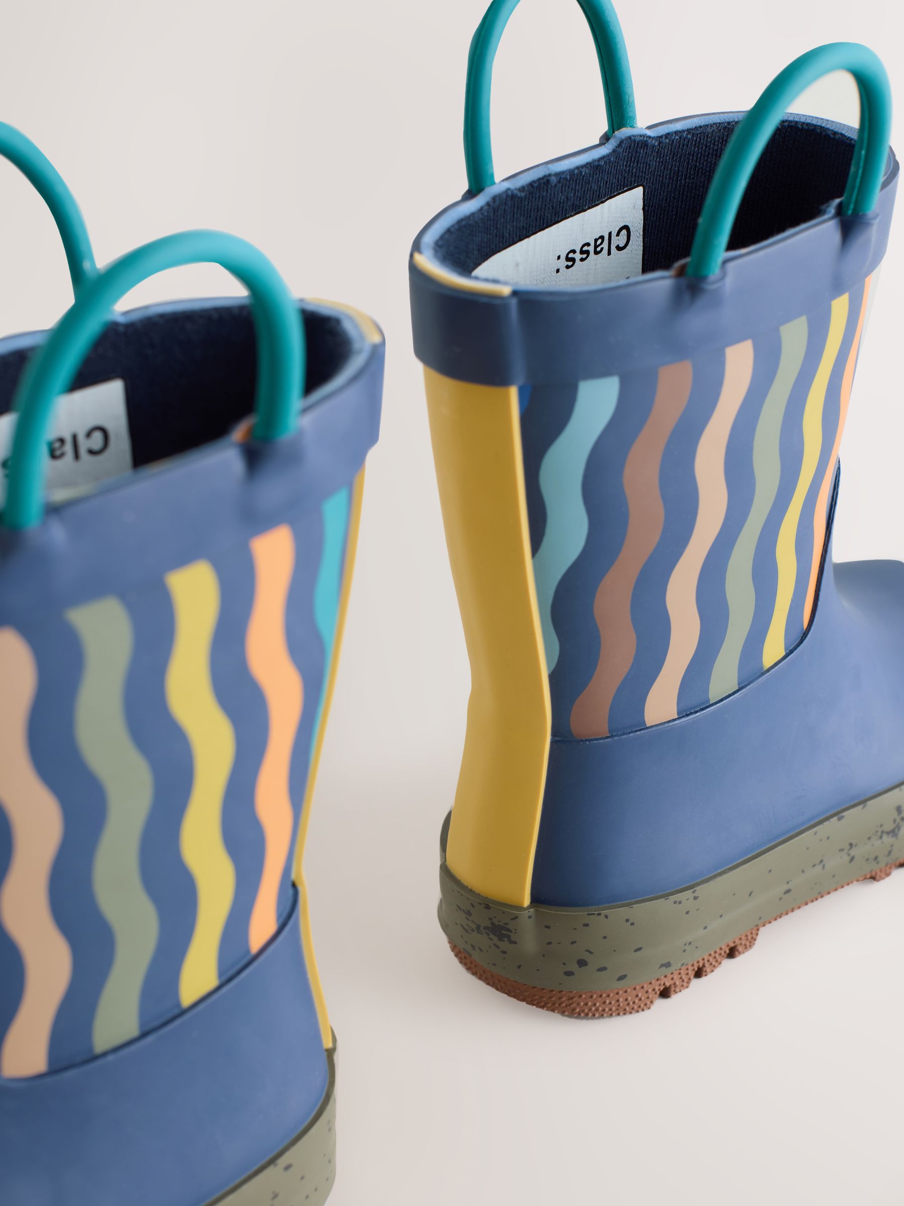 Yağmur birikintilerinde zıplamak artık çok daha eğlenceli! Klasik lacivert çizgili tasarımıyla dikkat çeken bu yağmur çizmeleri, yağmurlu havalar için mükemmel bir seçimdir. Kolay kullanılabilen kulpları sayesinde çocuklar rahatça giyip çıkarabilir. Dayanıklı ve kaymaz tabanı güvenli kullanım sağlarken, su geçirmez yapısıyla yağmurlu günlerin vazgeçilmezi olur.