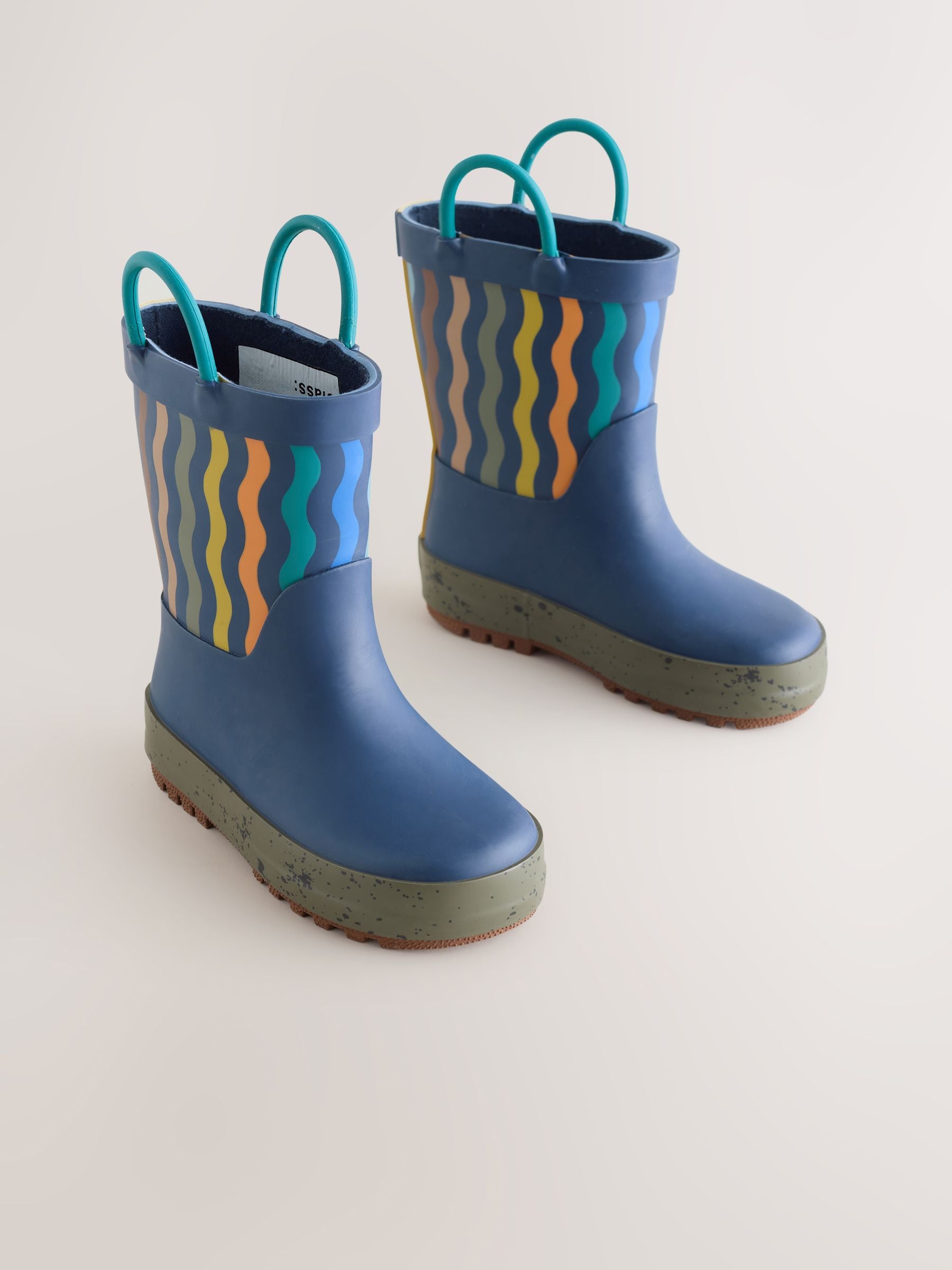 Lacivert Çizgili Kulplu Yağmur Çizmesi