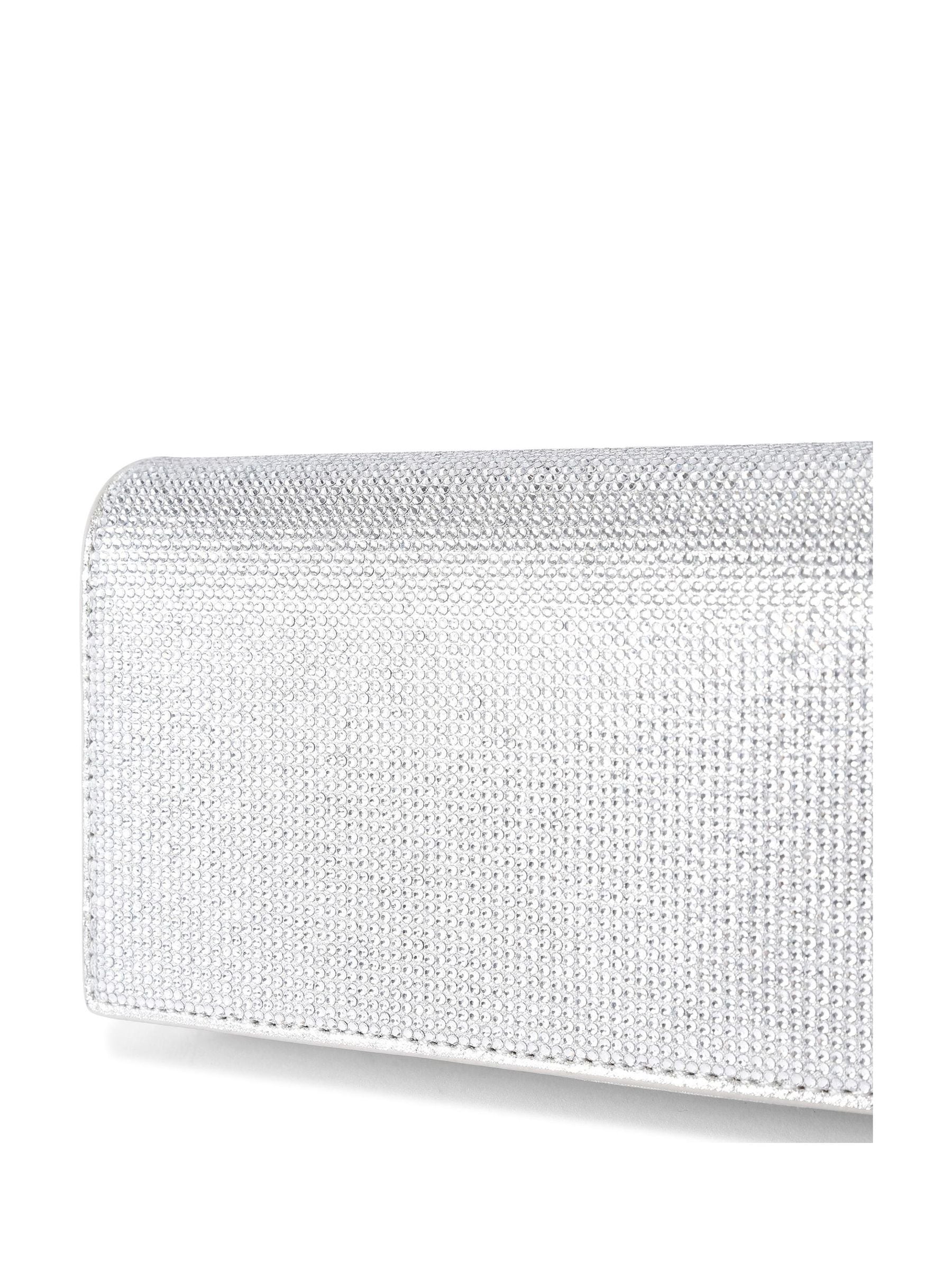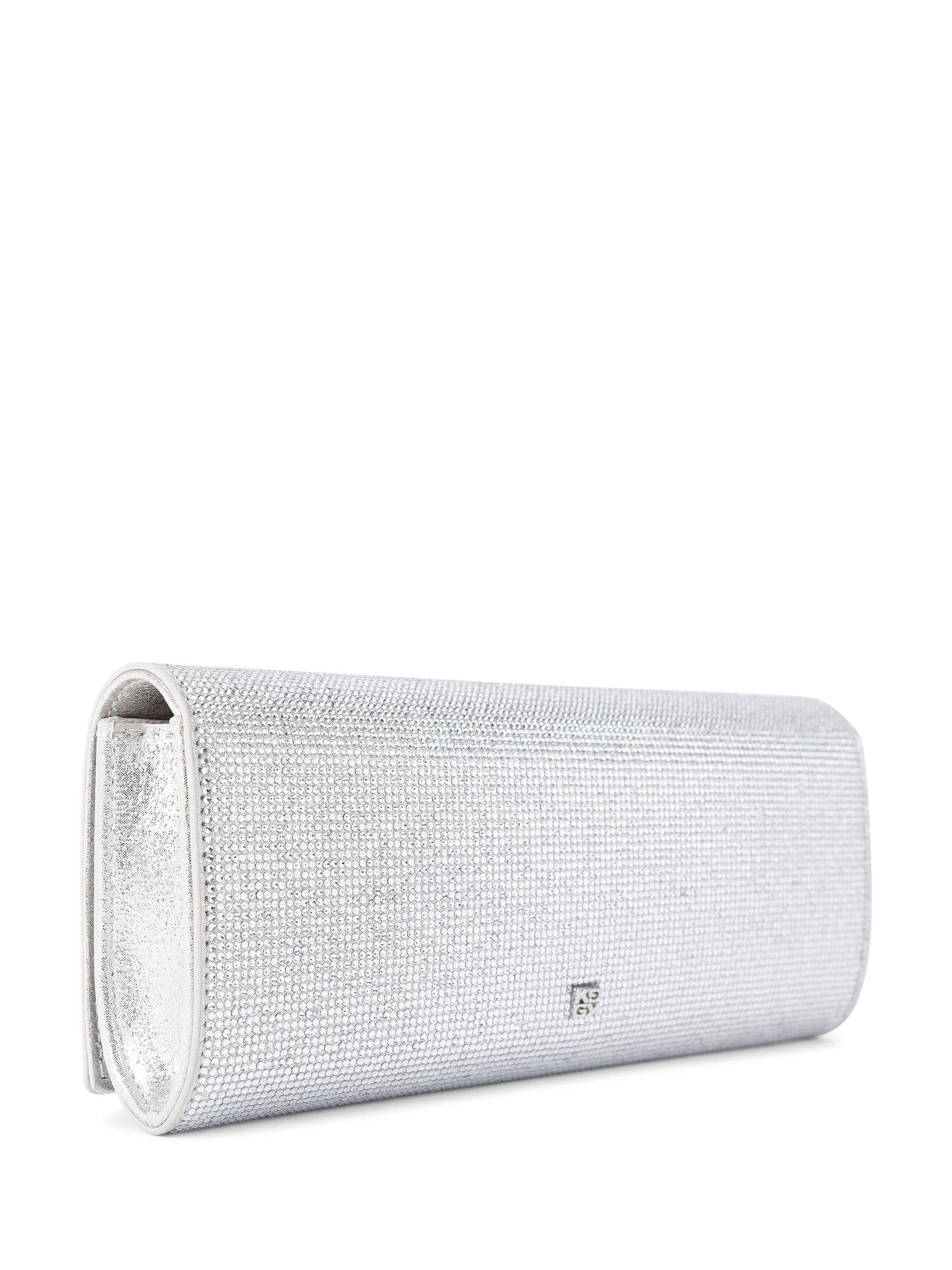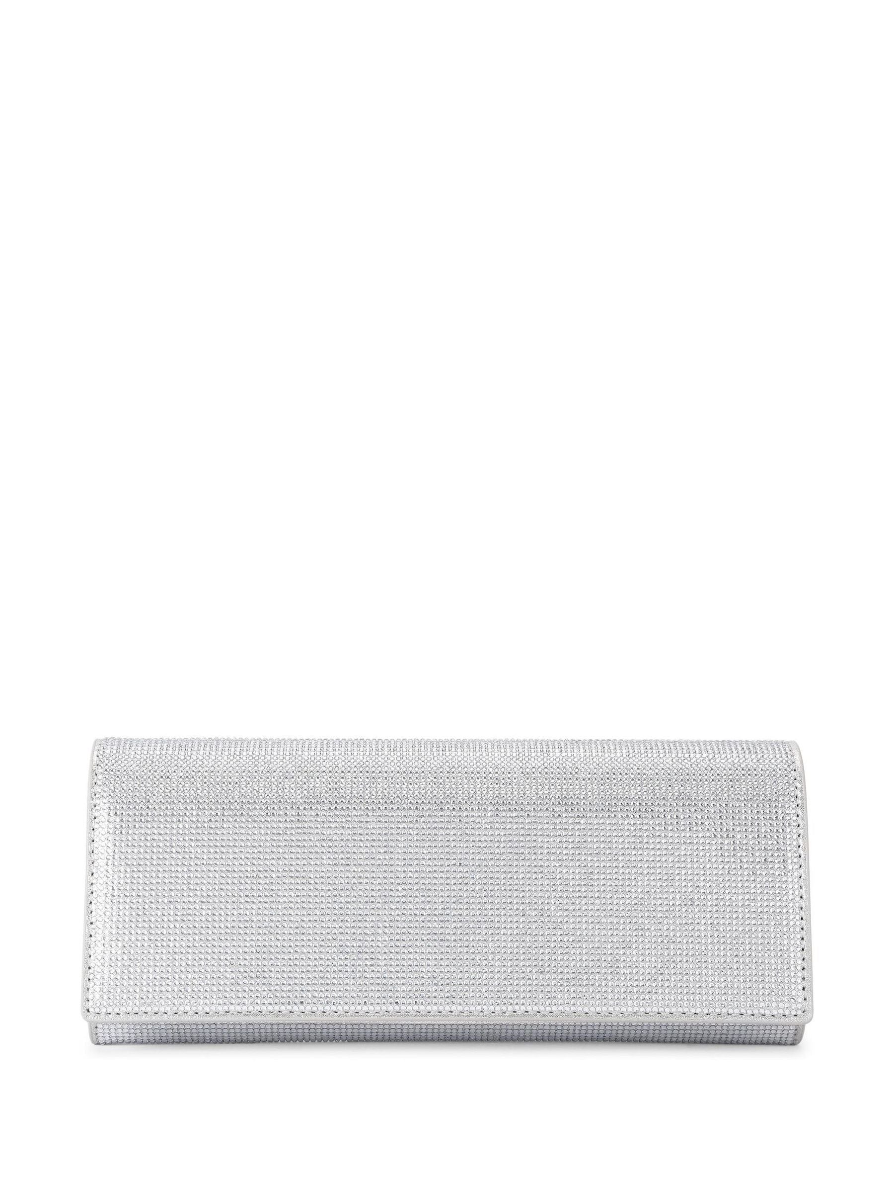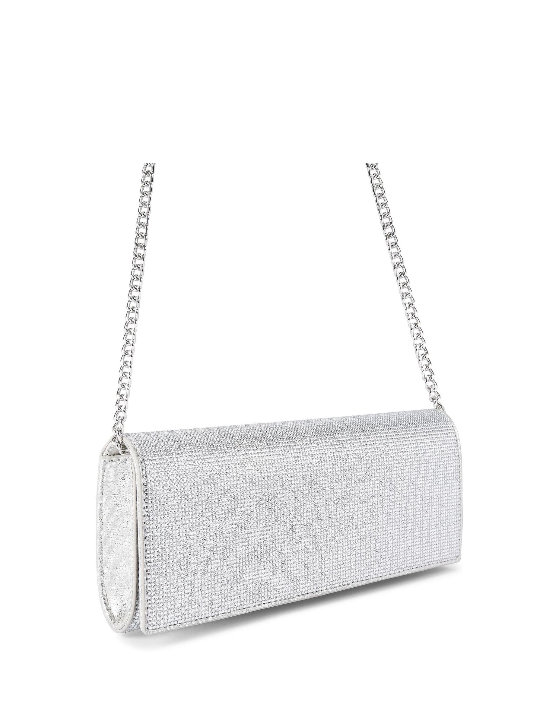 KG Kurt Geiger’in ikonik Baily modeli, gümüş kumaş üzerine işlenmiş kristal süslemeleriyle zarafeti ön plana çıkarıyor. Uzun formuyla hem şık bir clutch hem de zincir askısıyla omuz çantası olarak kullanılabilir. Arka kısmındaki küçük KG Kurt Geiger pin detayıyla tamamlanan tasarım, özel günler ve davetler için mükemmel bir seçimdir.