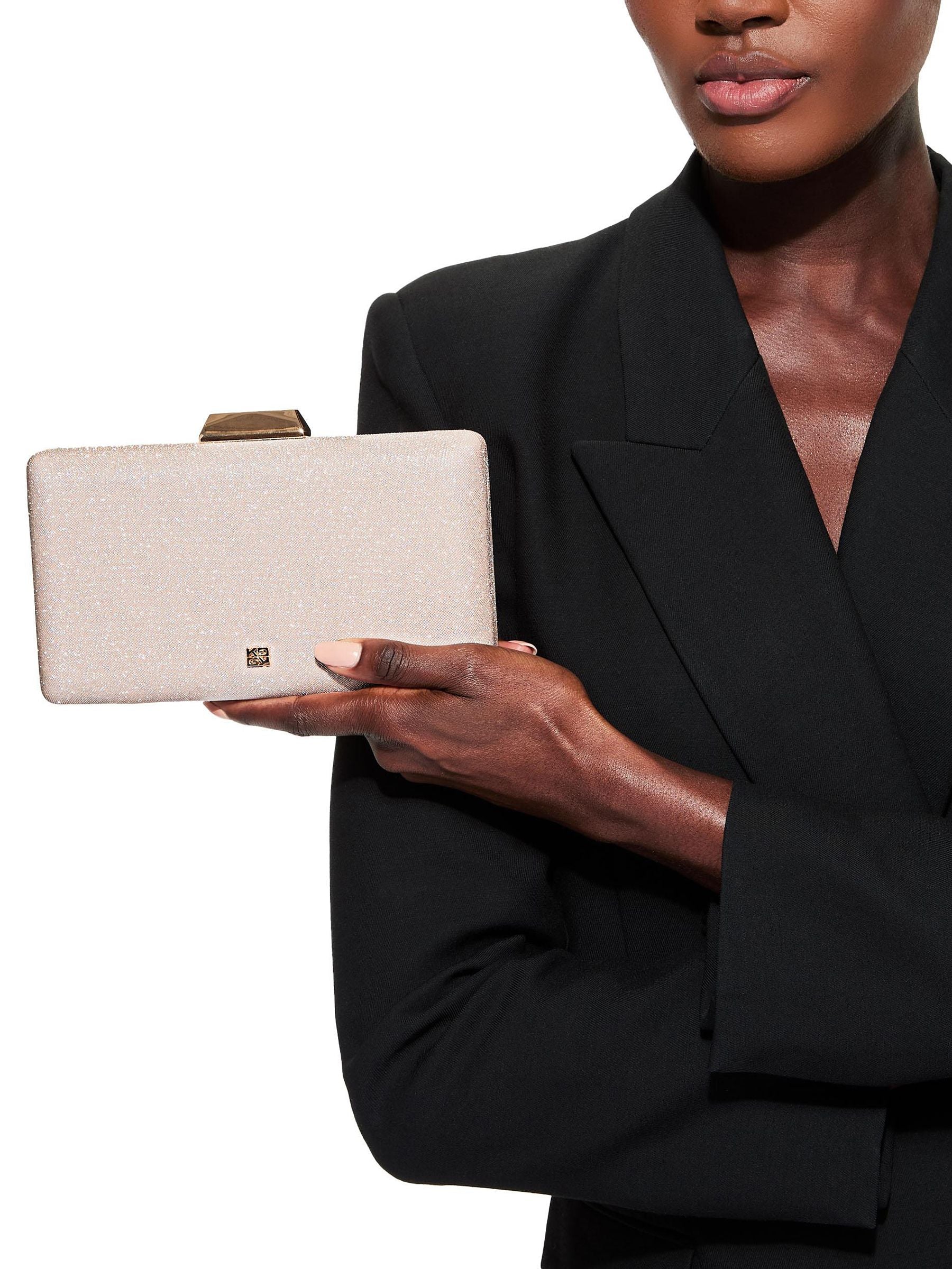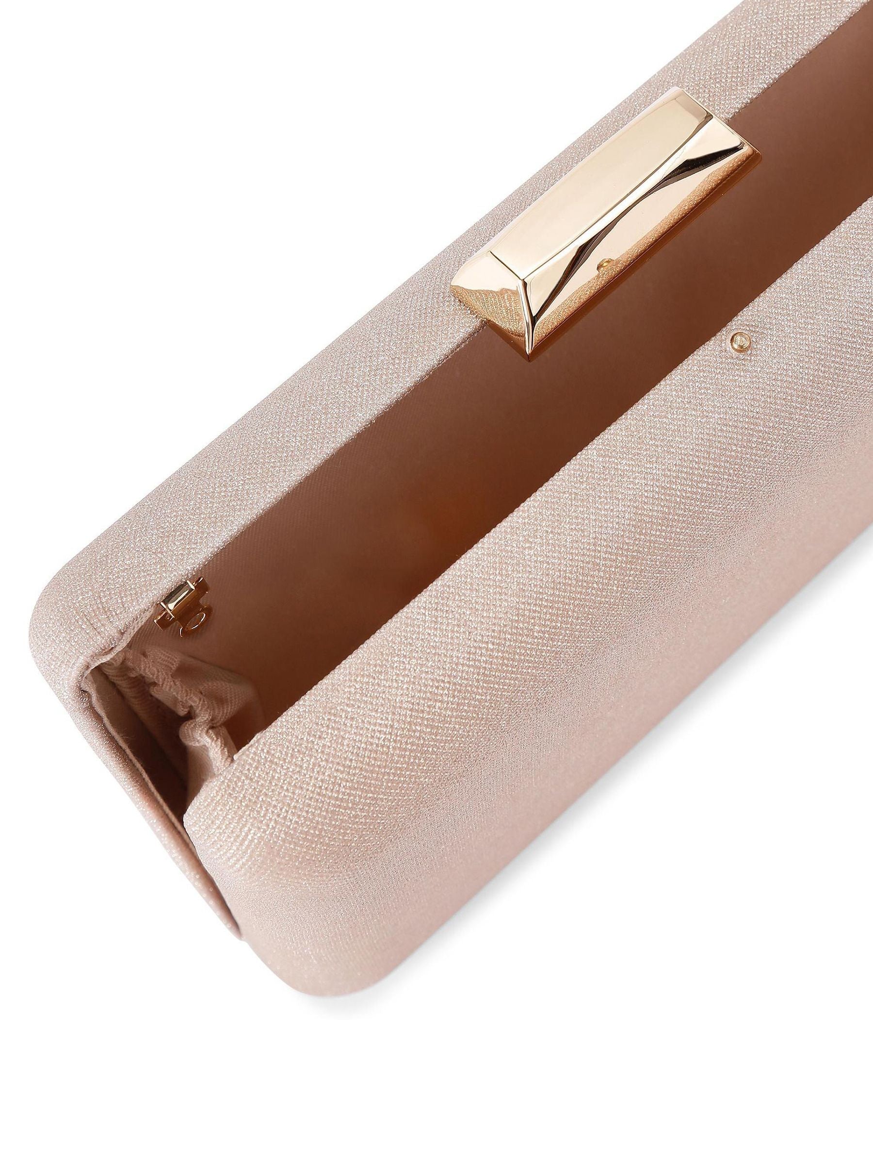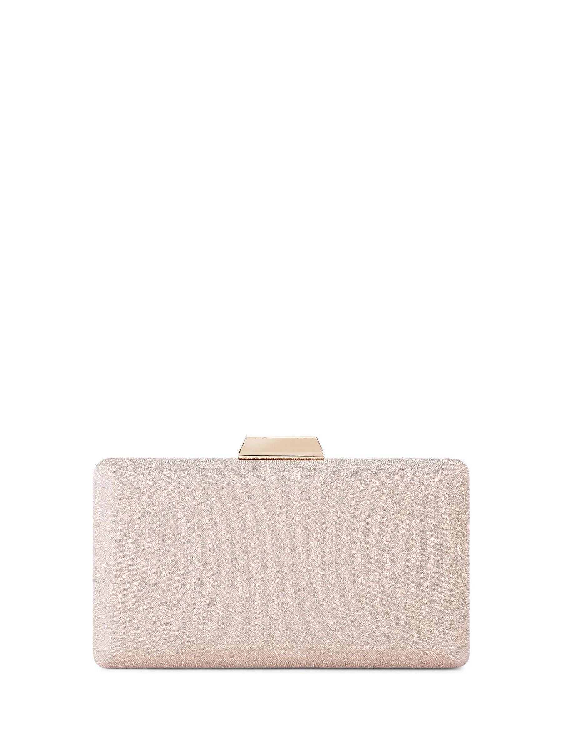 Billy clutch çanta, ışıltılı sim efektine sahip altın renkli kumaş dış yüzeyiyle şık bir tasarıma sahiptir. Hem elde taşınabilir hem de 118 cm uzunluğundaki askısı ile omuzda veya çapraz şekilde kullanılabilir.