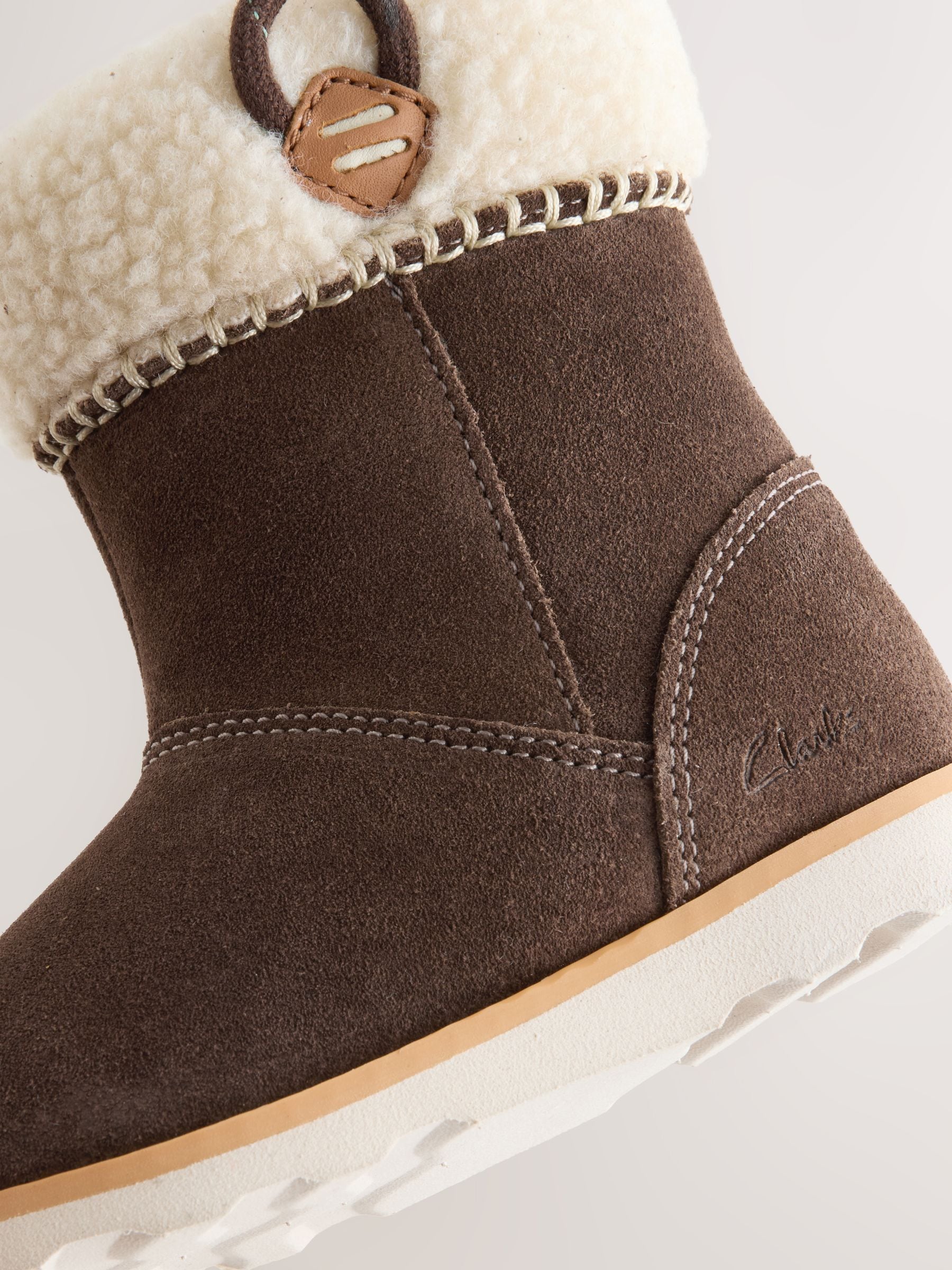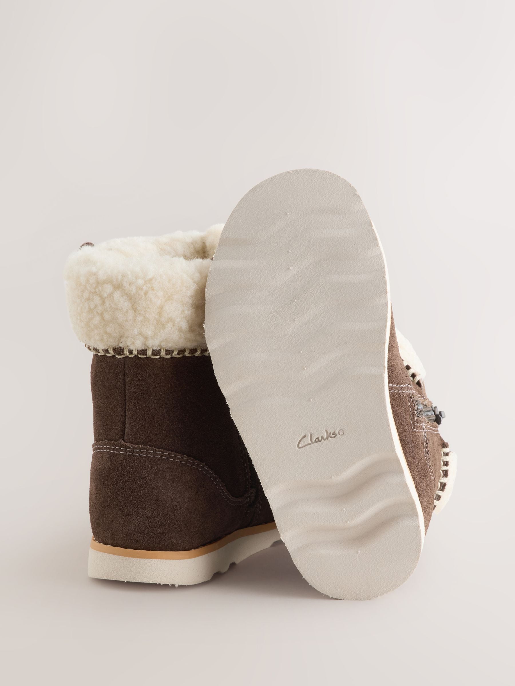 Clarks Brown Multi Fit Suede Sheepskin Trimmed Zip Fastening Wide Fit Boots