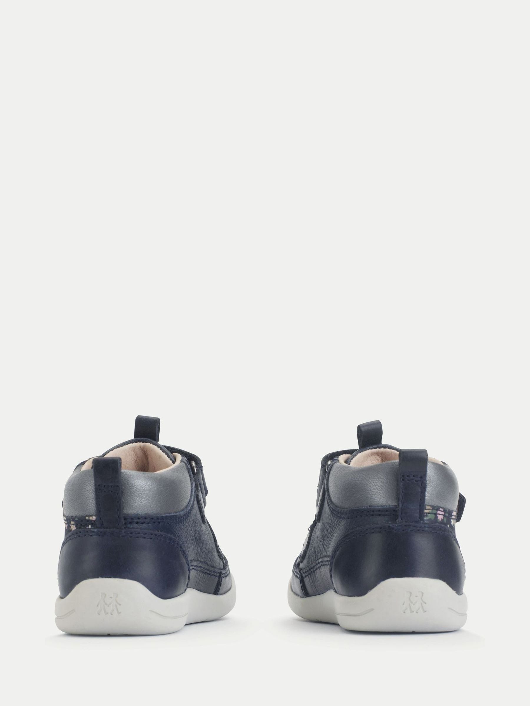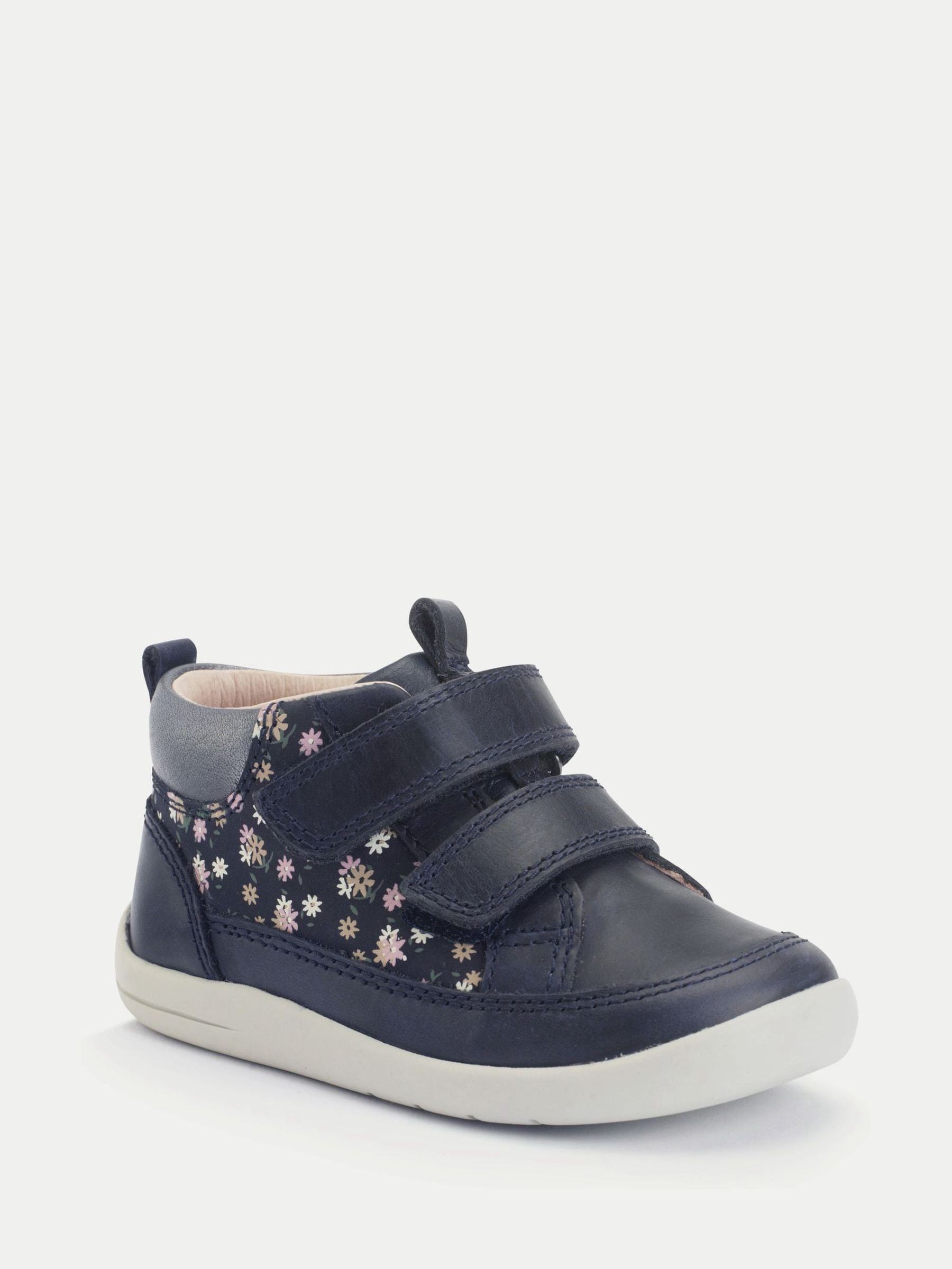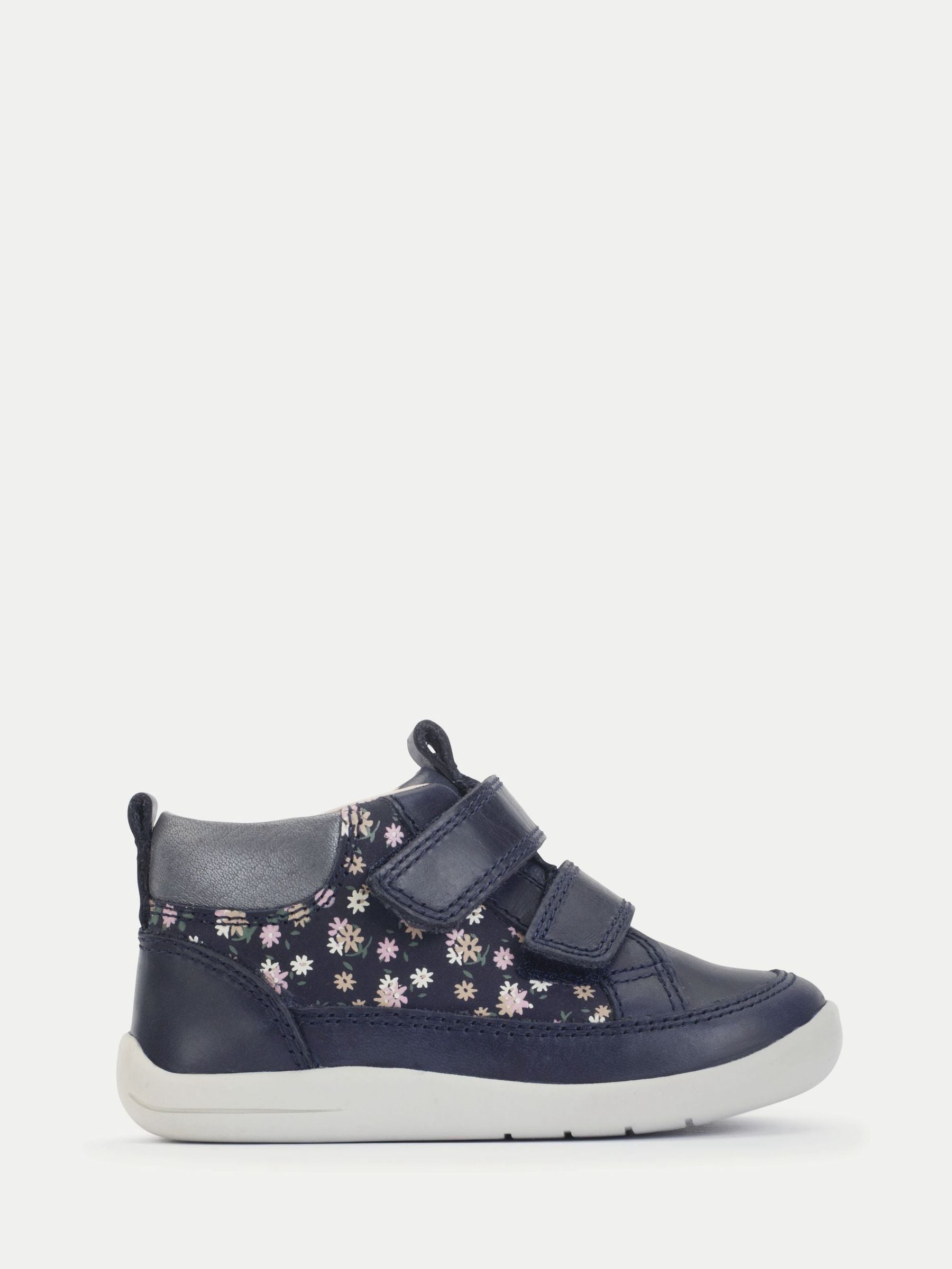 Start-Rite Girls Blue Rove Leather Double Rip-Tape Closed Floral Print First Ankle Boots