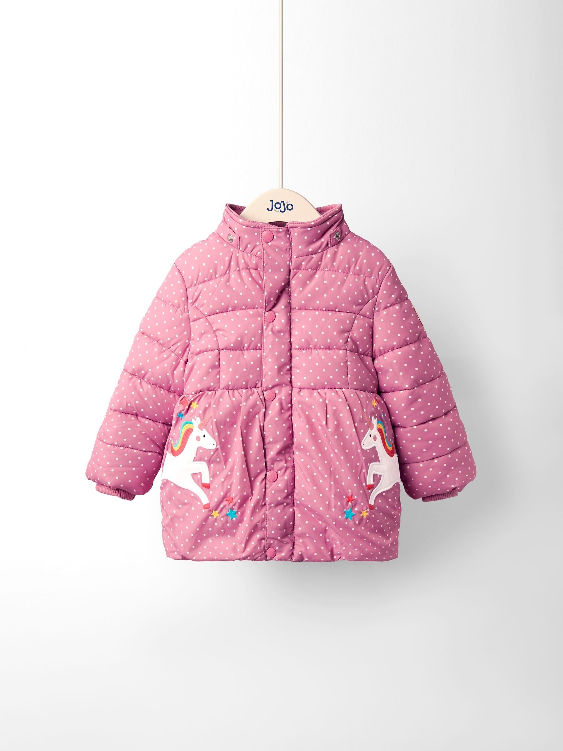 JoJo Maman Bébé Pink Unicorn Fleece Lined Puffer Coat