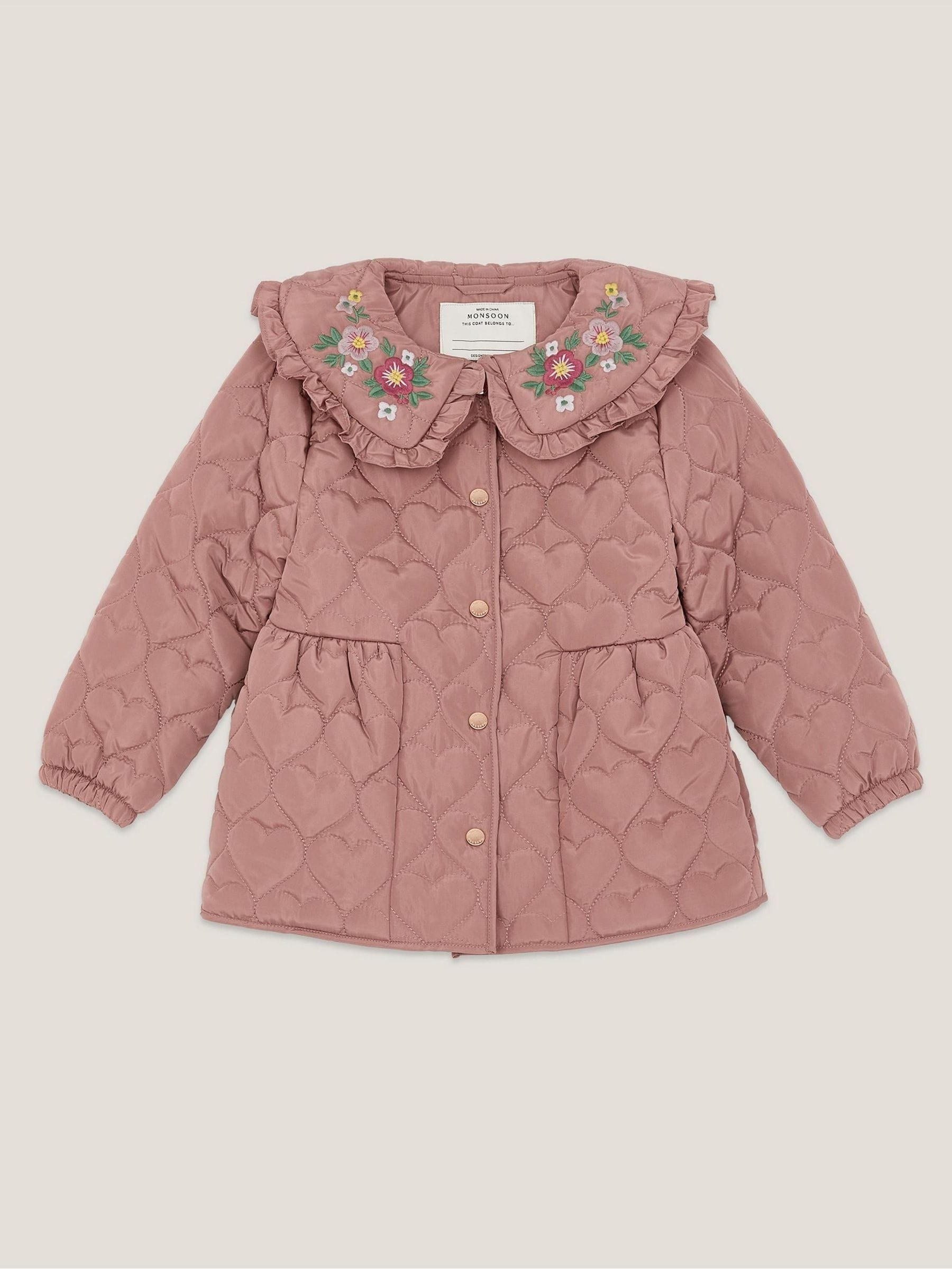 Monsoon Pink Embroidered Heart Quilted Coat