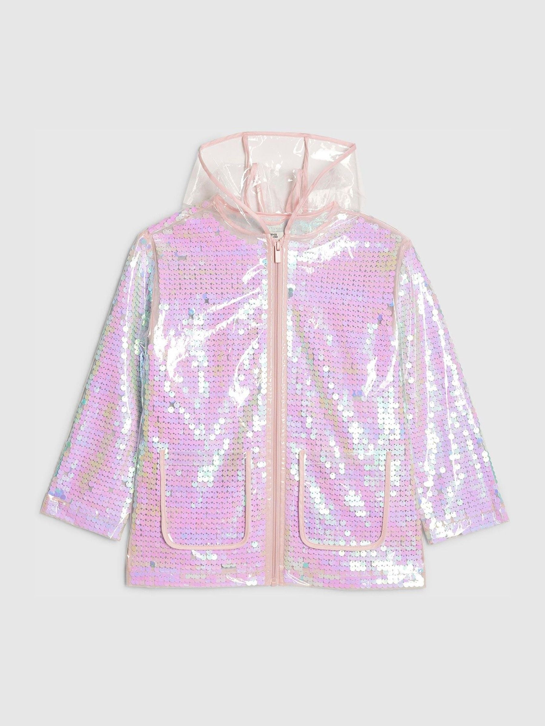 River Island Pink Sequin Rainmac Coat