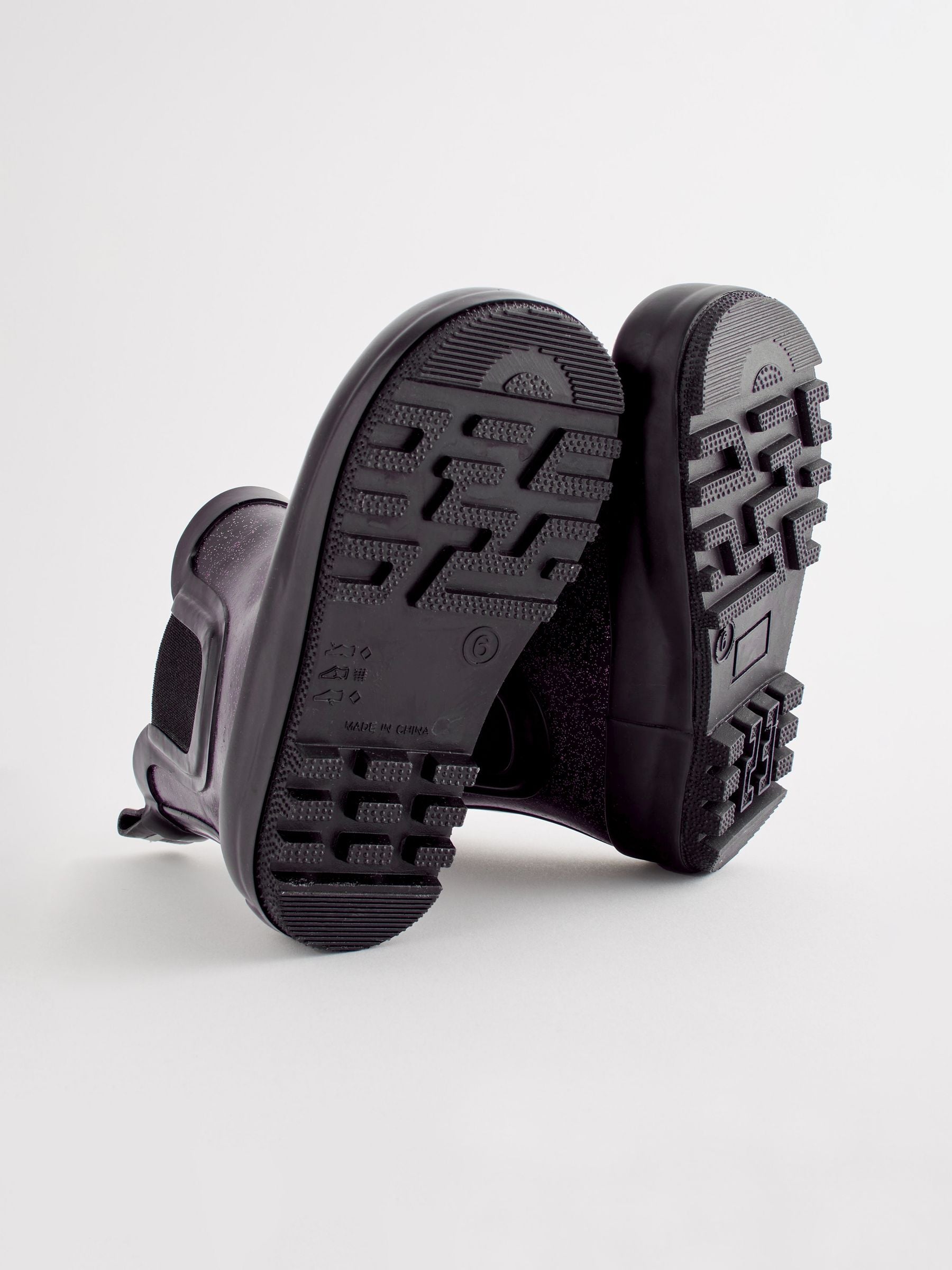 Su birikintilerinde zıplamaktan kır gezilerine kadar her an için ideal! Siyah renkte tasarlanan bu sevimli yağmur çizmeleri, klasik Chelsea formuna sahiptir. Yan kısımdaki lastikli paneller sayesinde kolayca giyilip çıkarılabilir. Su geçirmez dış yüzeyi, yumuşak astarı ve dayanıklı kauçuk tabanı ile konfor ve güvenliği bir arada sunar.