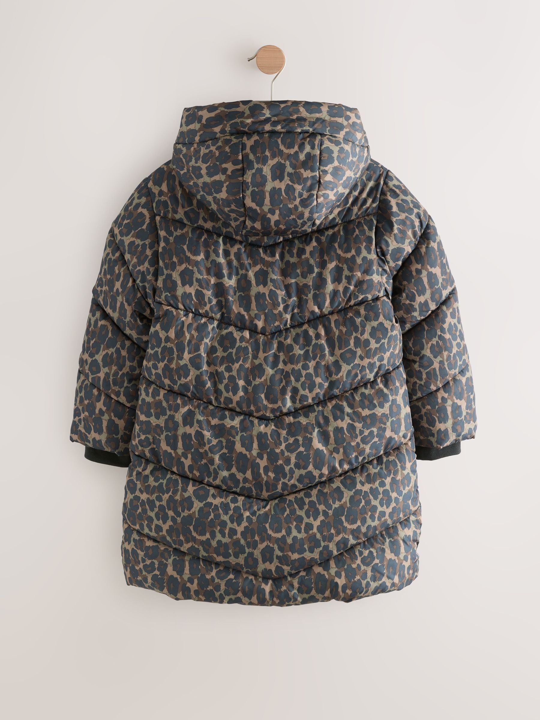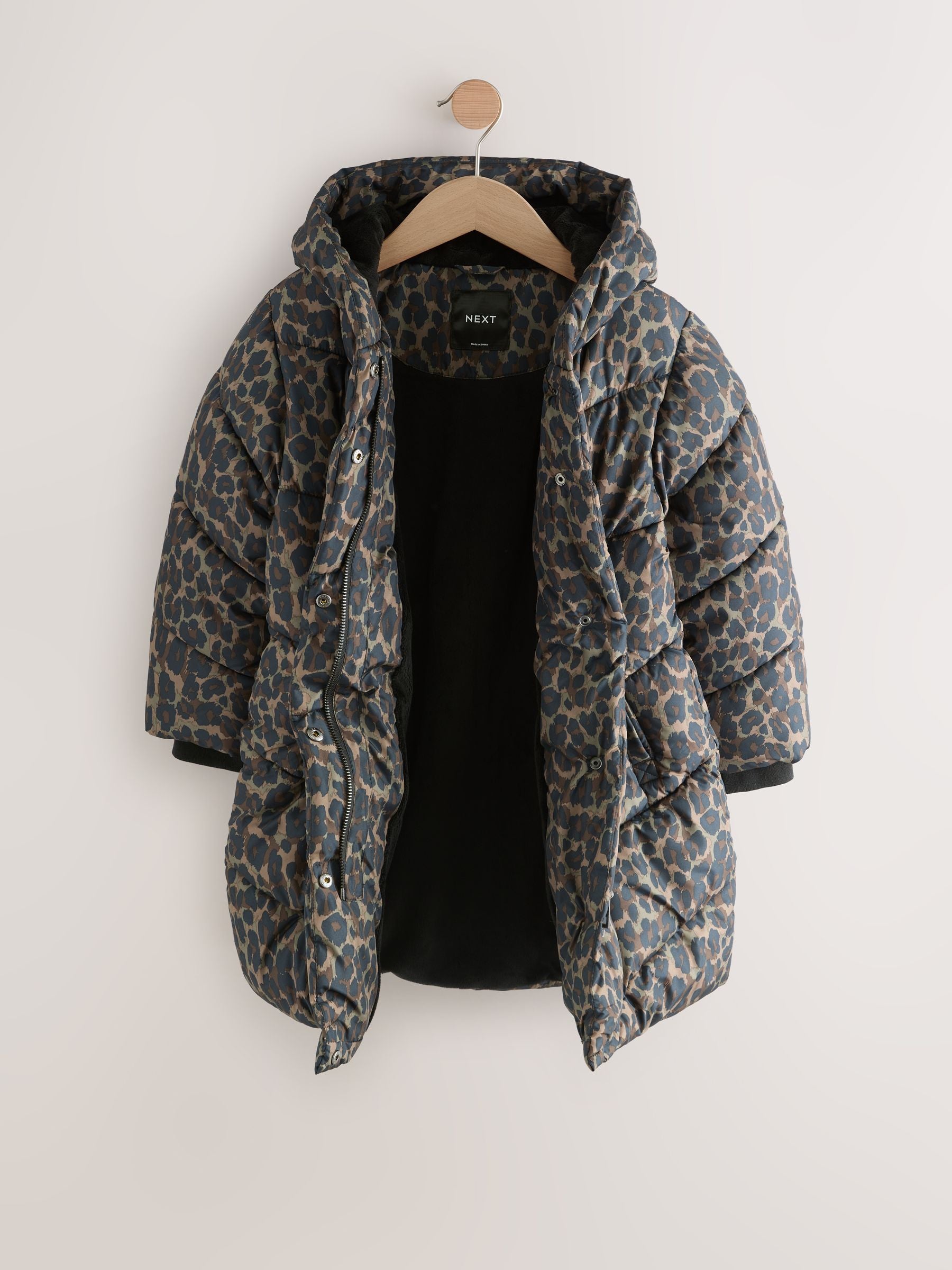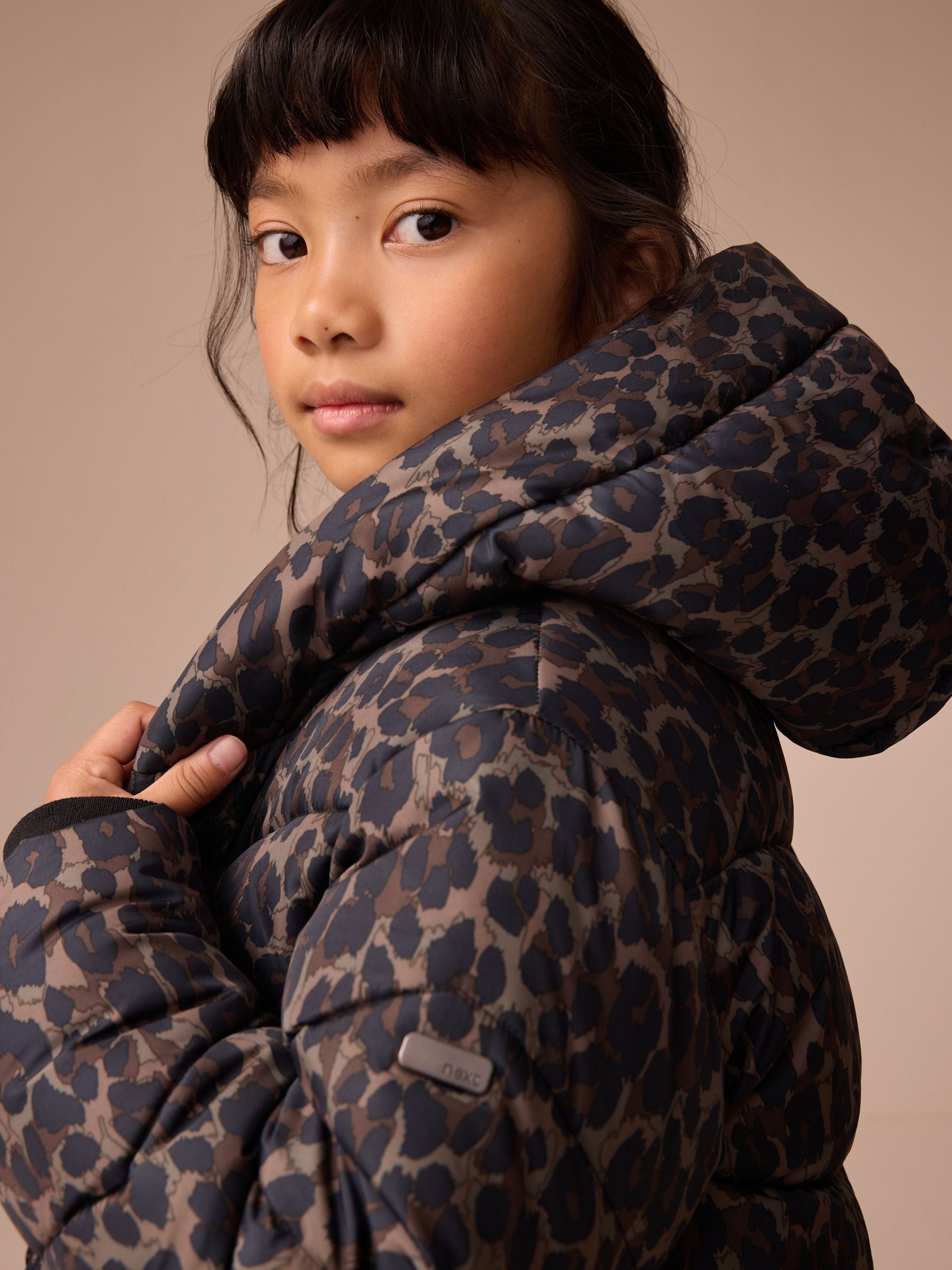Hayvan Desenli Suya Dayanıklı Kürklü Kapüşonlu Dolgulu Mont (3-16 Yaş)