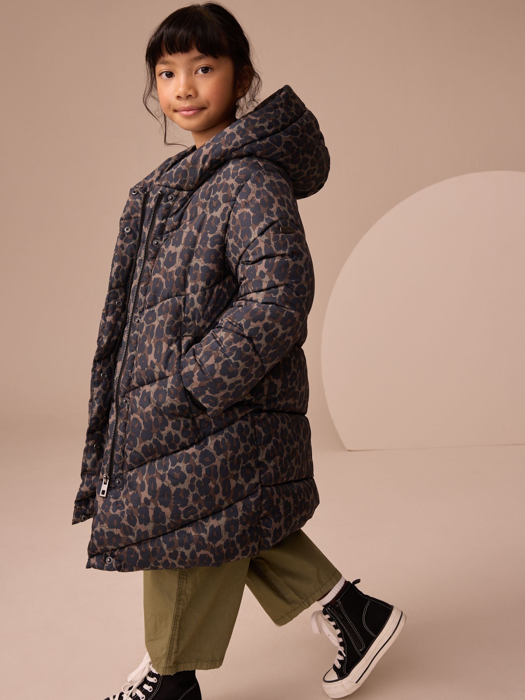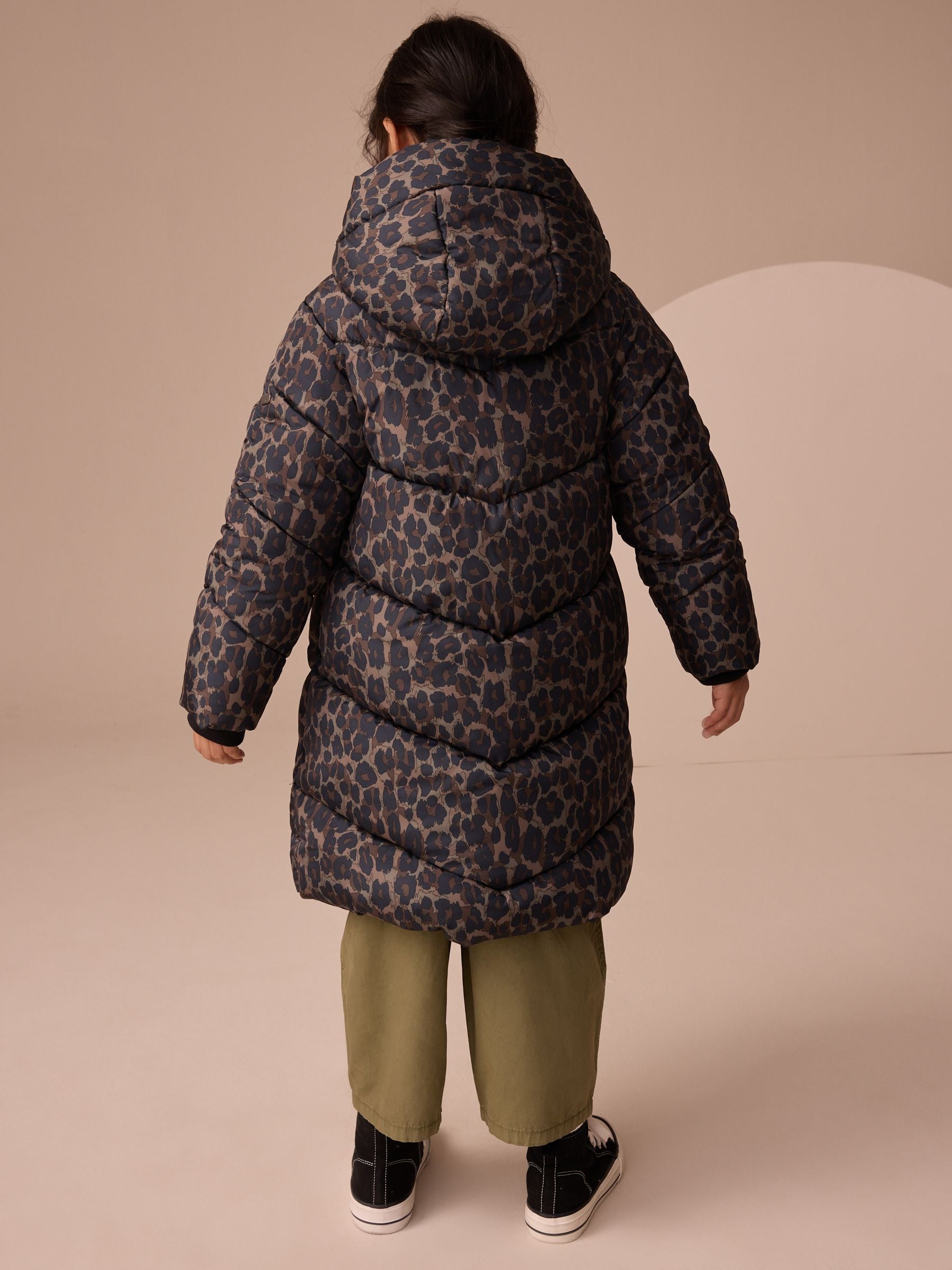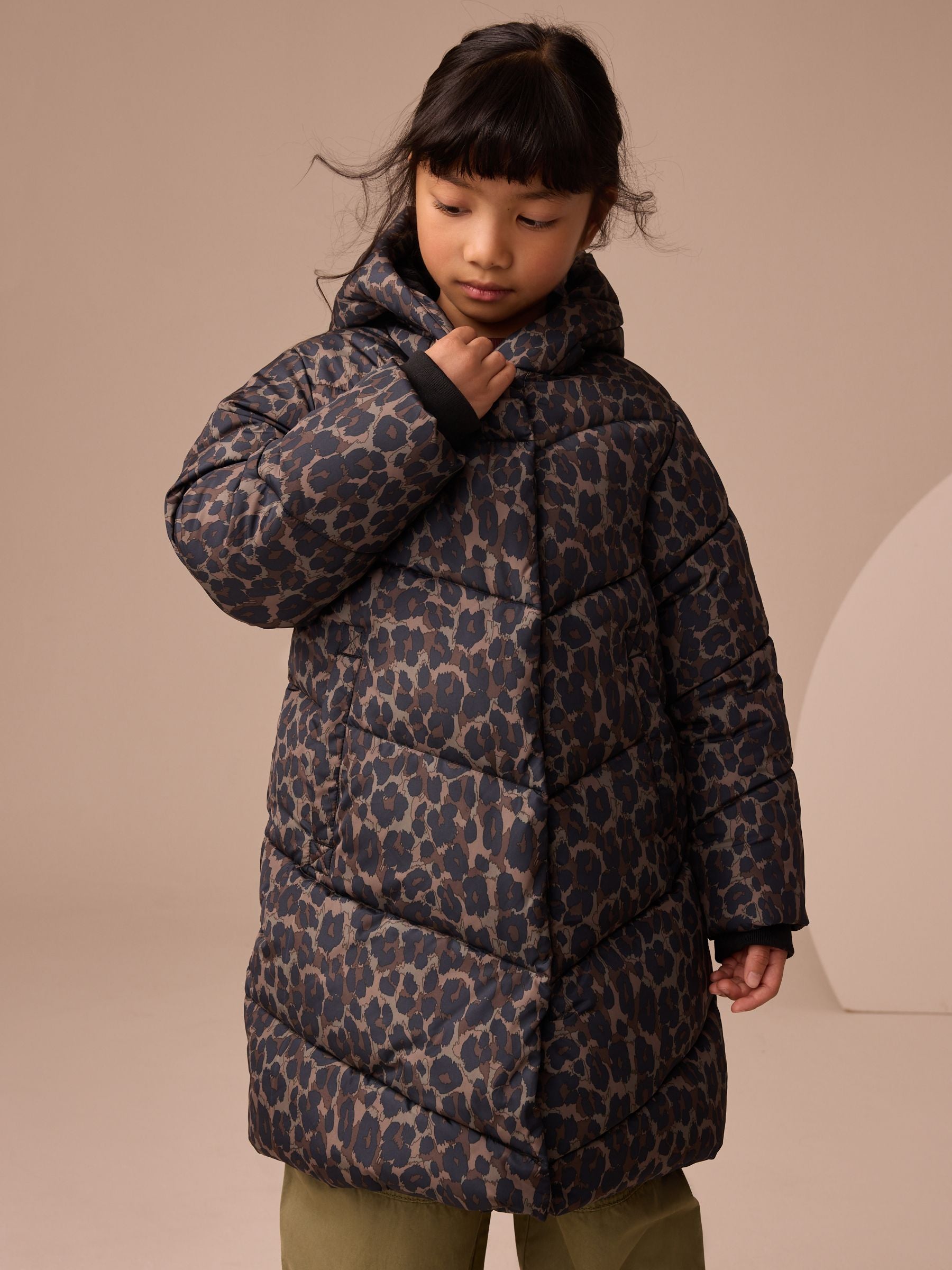 Hayvan Desenli Suya Dayanıklı Kürklü Kapüşonlu Dolgulu Mont (3-16 Yaş)