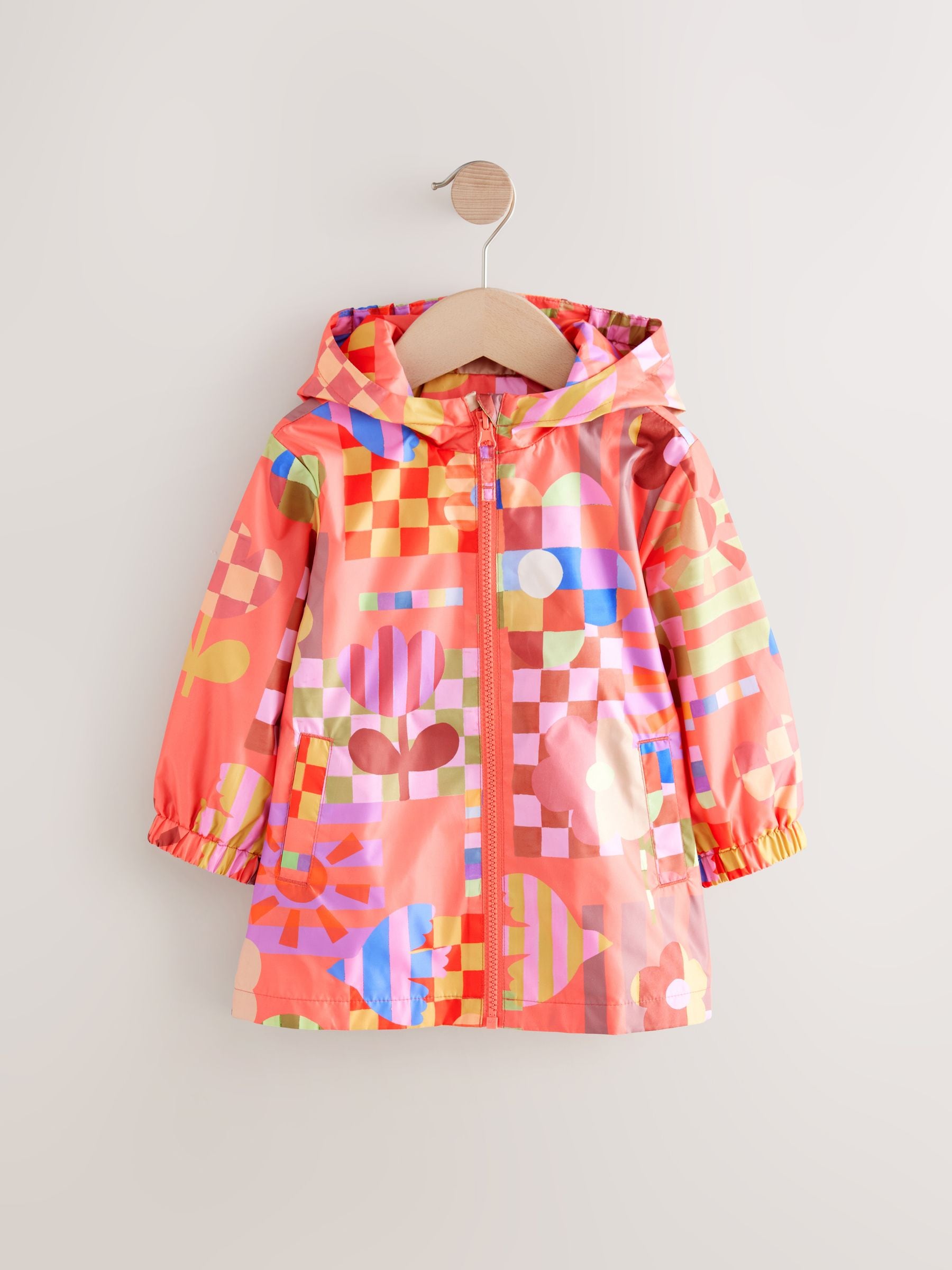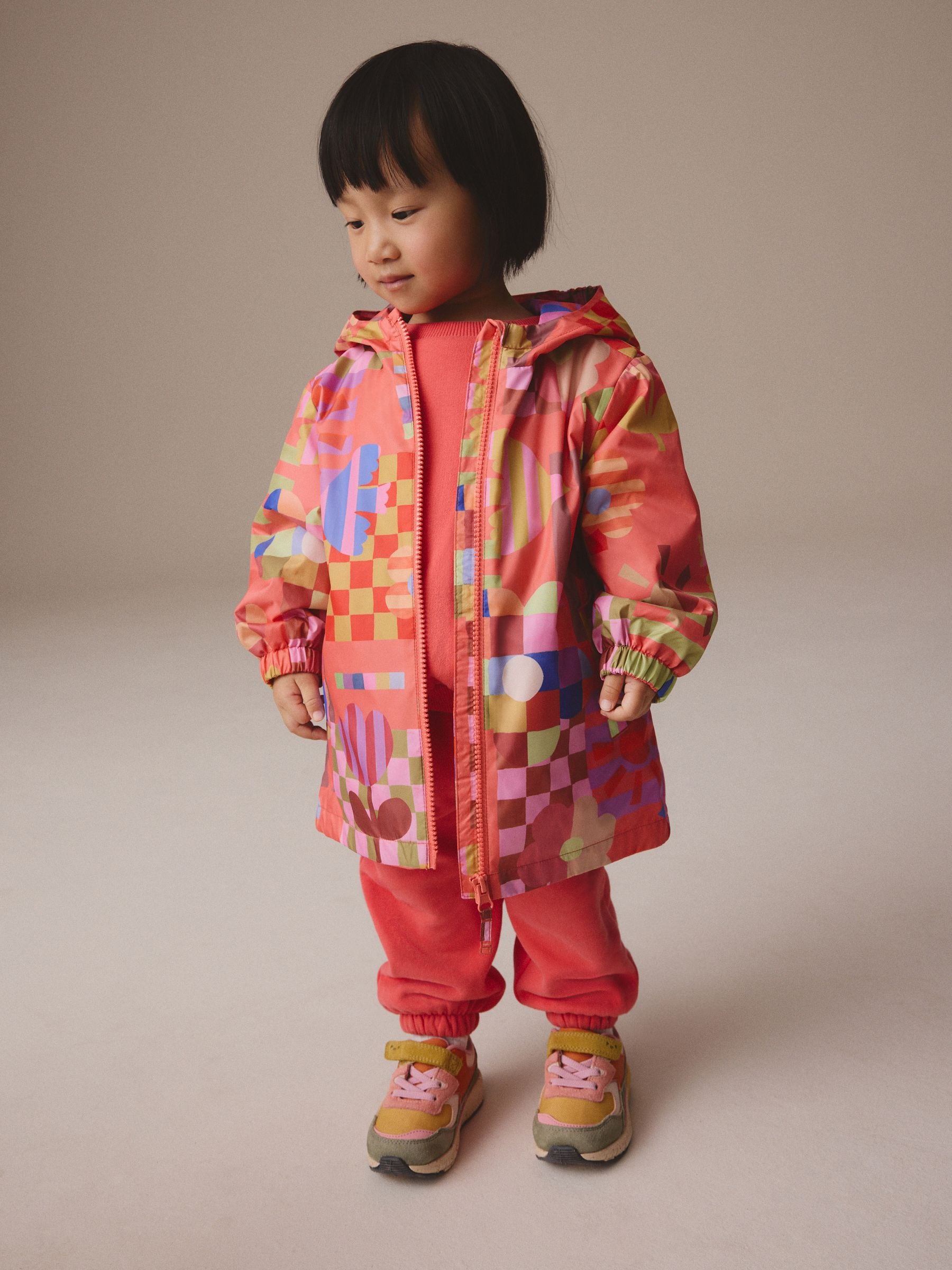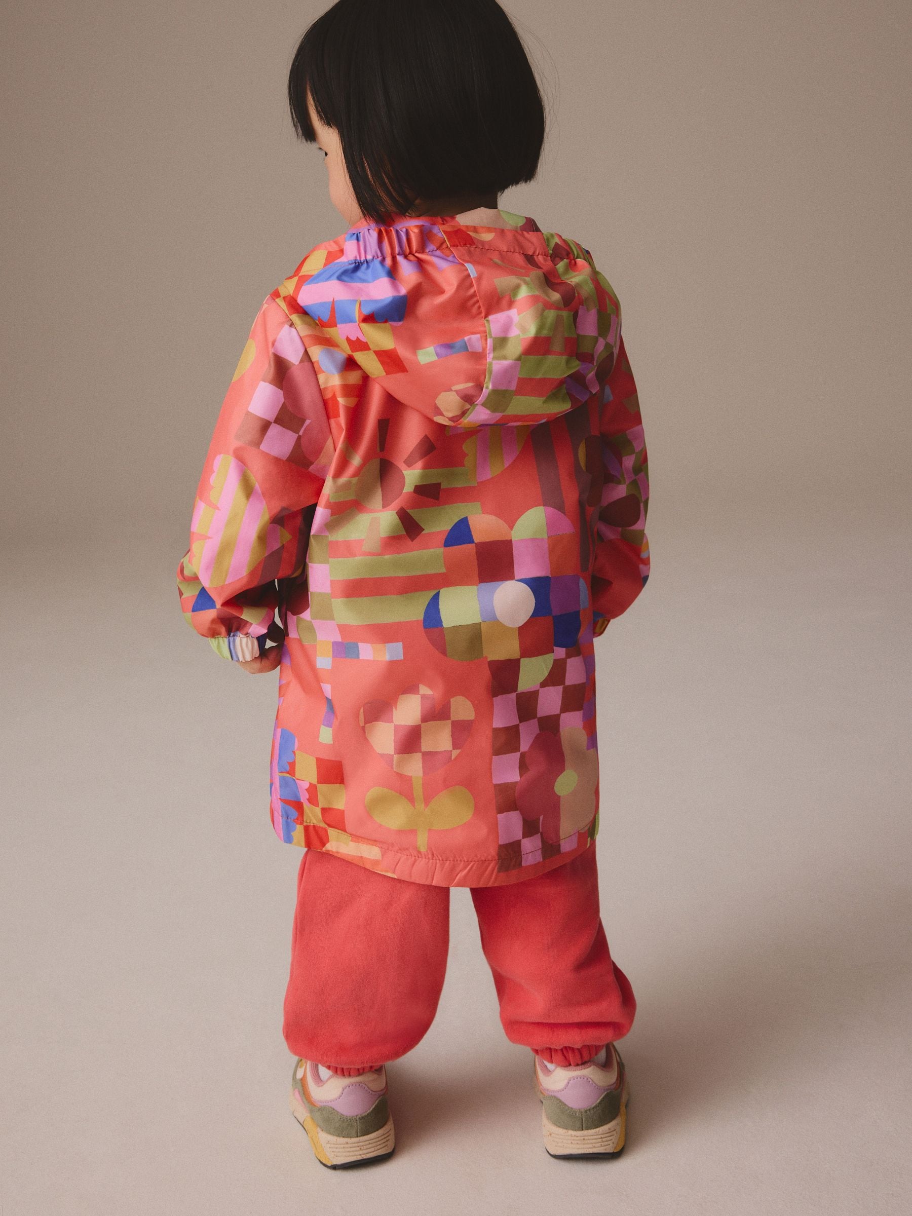 Mercan Renkli Desenli Suya Dayanıklı İnce Ceket (3 Ay–7 Yaş)
