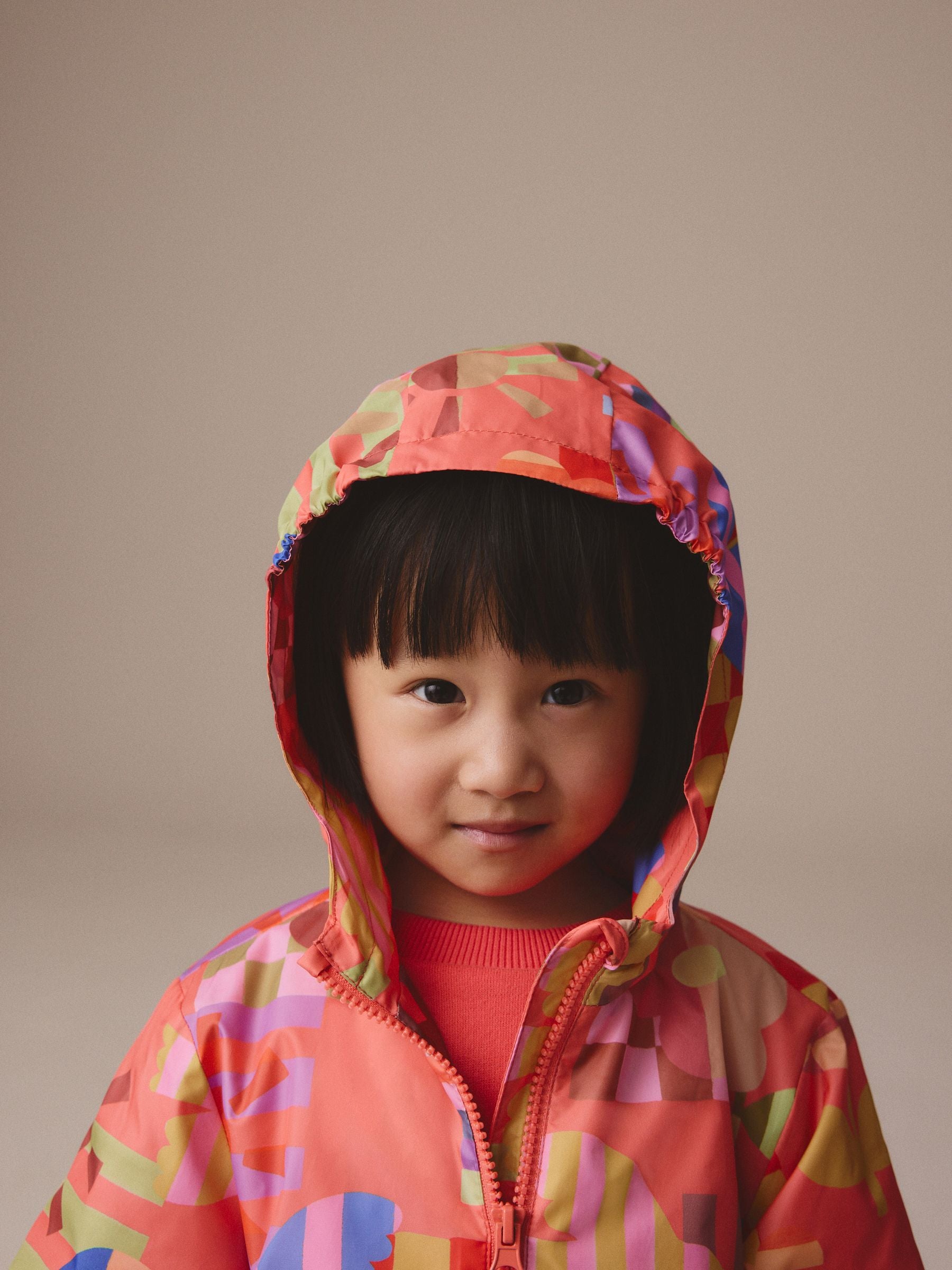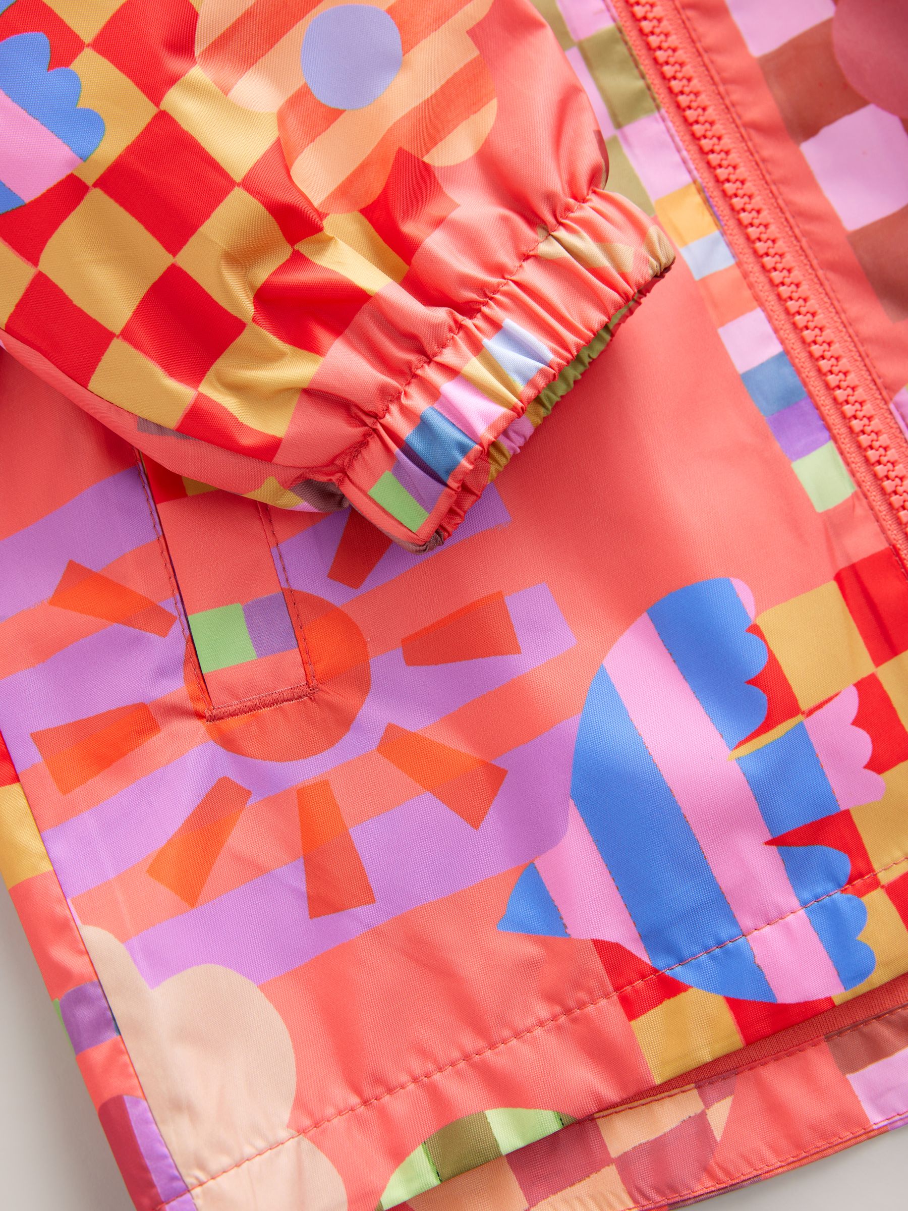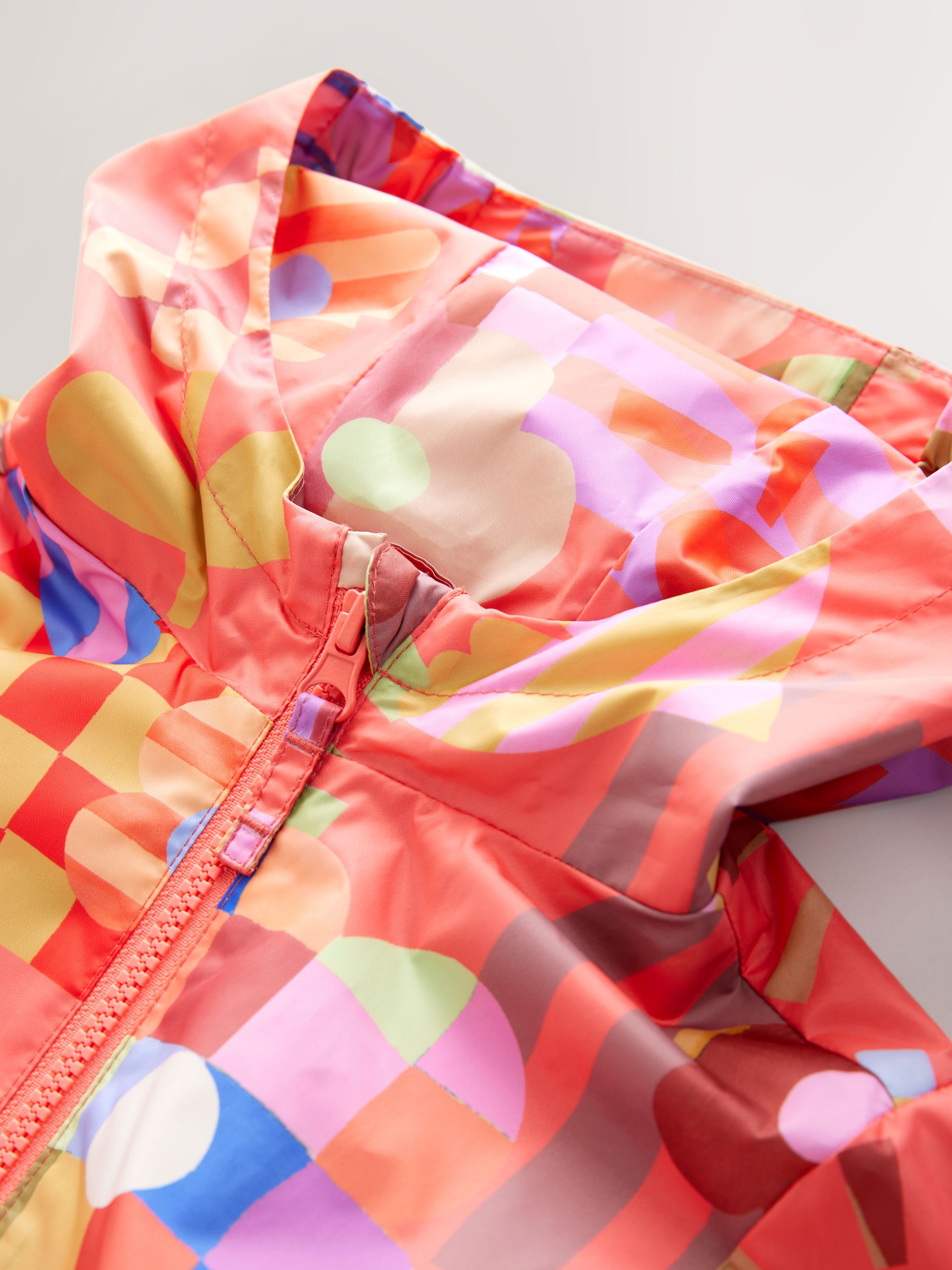 Mercan Renkli Desenli Suya Dayanıklı İnce Ceket (3 Ay–7 Yaş)