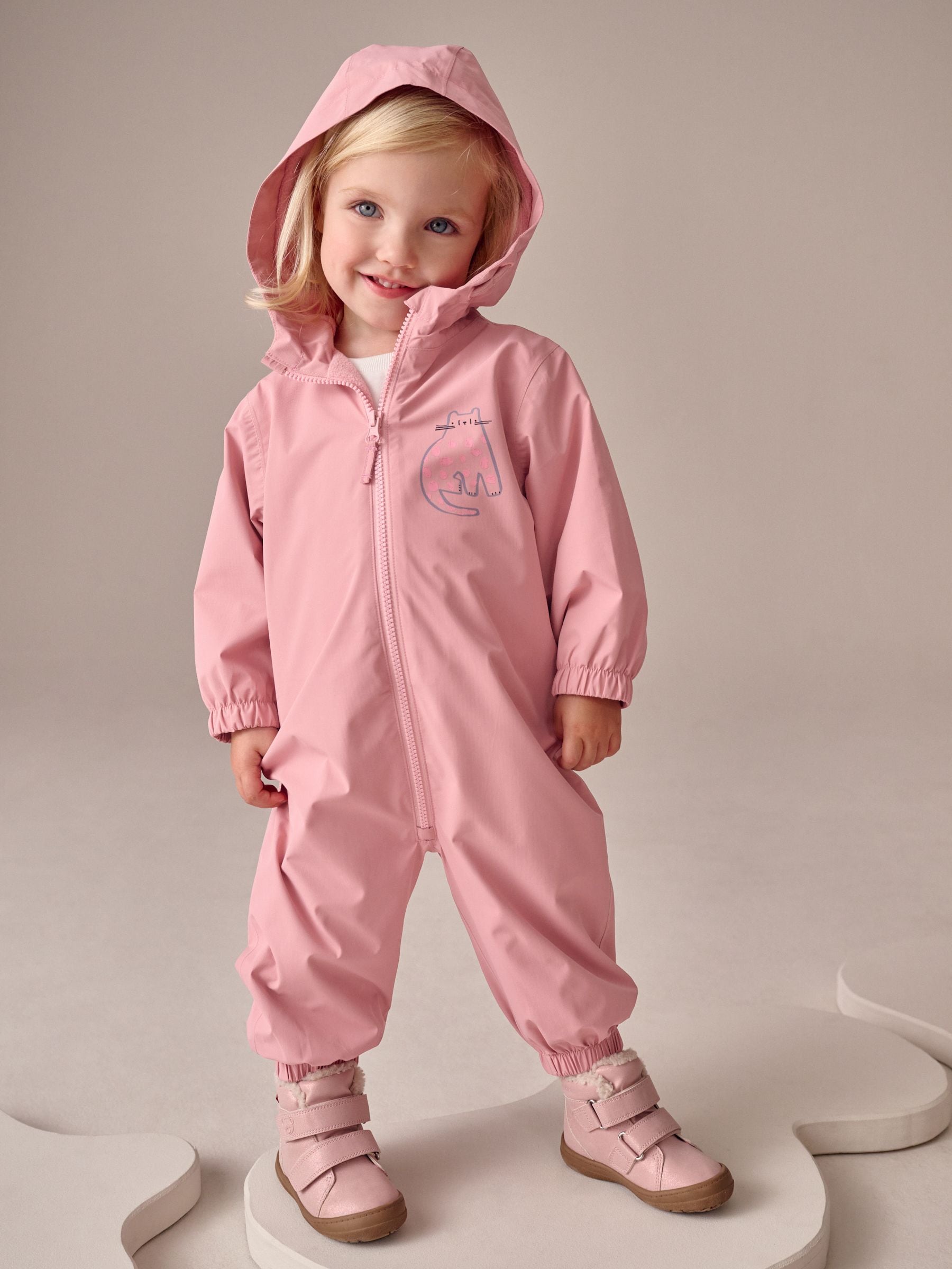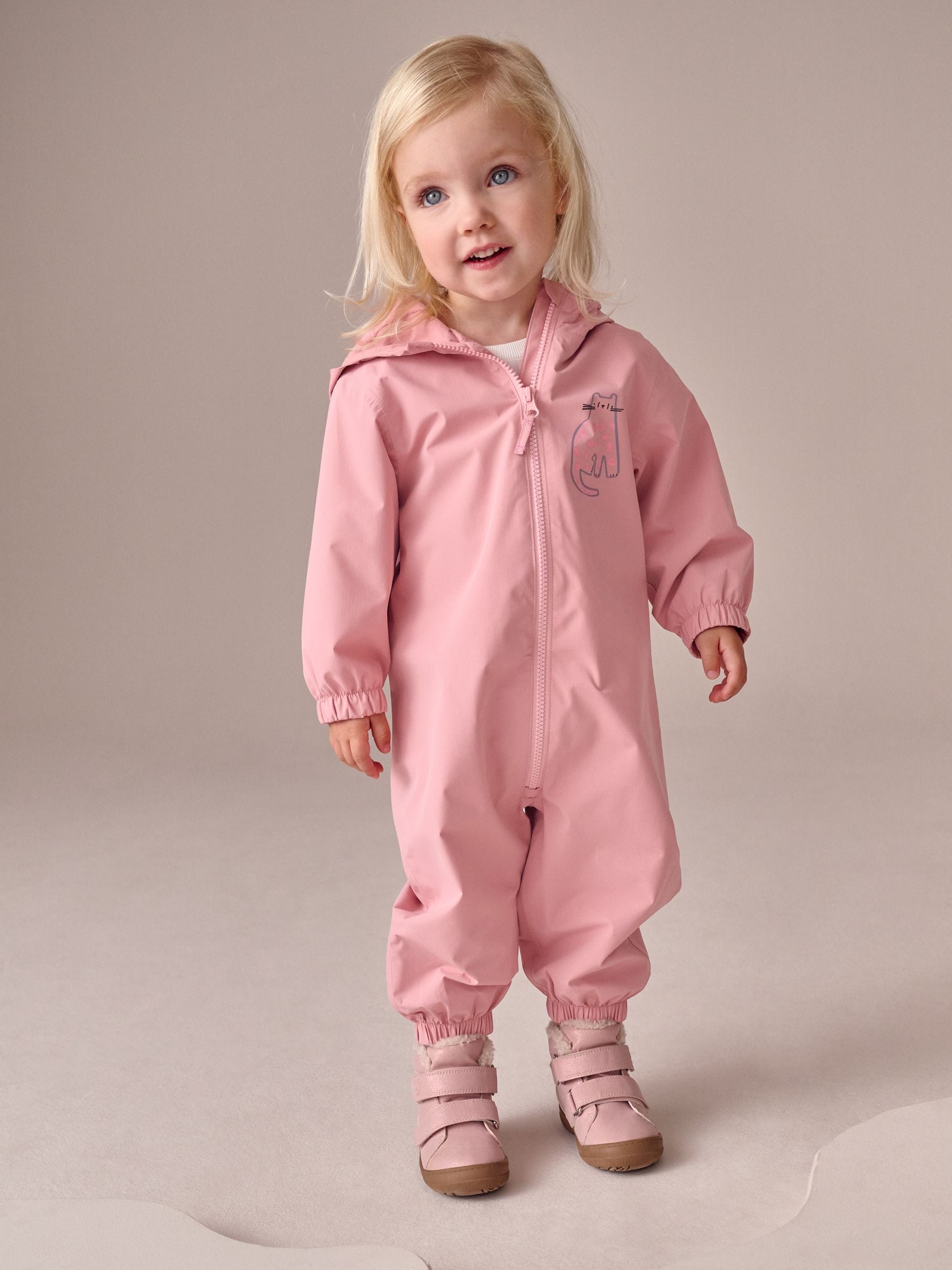 Açık Pembe Su Geçirmez Baskılı Tulum (3 Ay–7 Yaş)