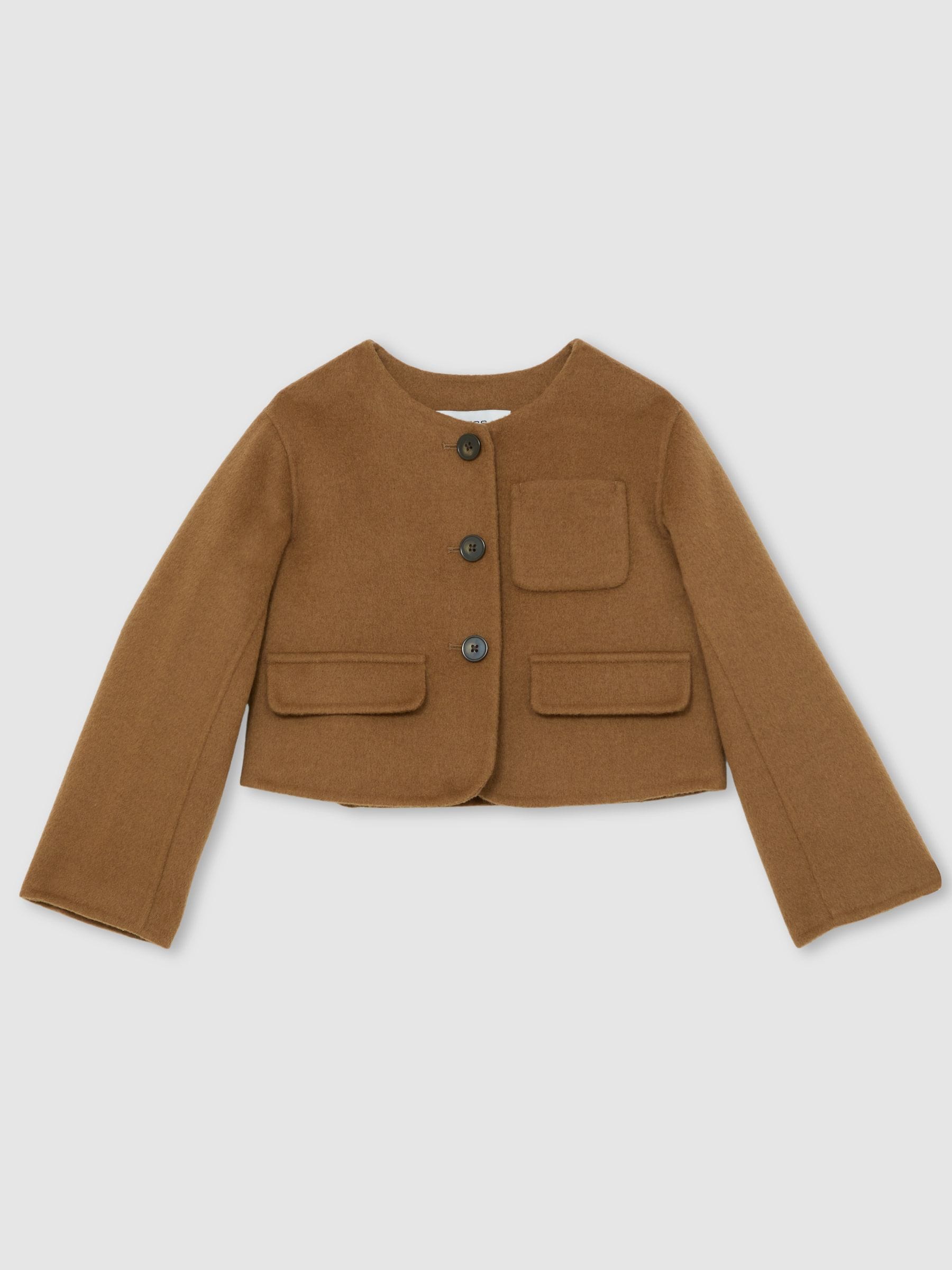 Reiss Camel Ami 13-14 yrs Wool-Blend Cropped Collarless Jacket